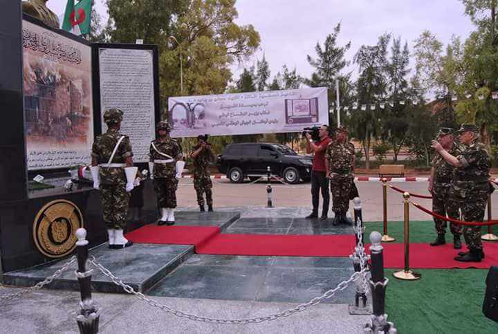 وبمدخل قيادة الناحية العسكرية الثالثة، وضع الفريق أحمد قايد صالح رئيس أركان الجيش الوطني الشعبي رفقة اللواء سعيد شنقريحة إكليلا من الزهور أمام المعلم المخلد لإسمه.