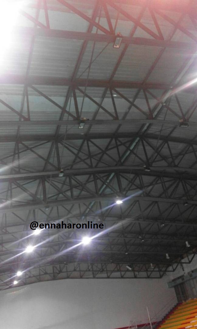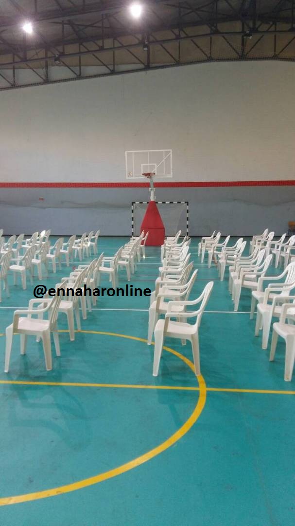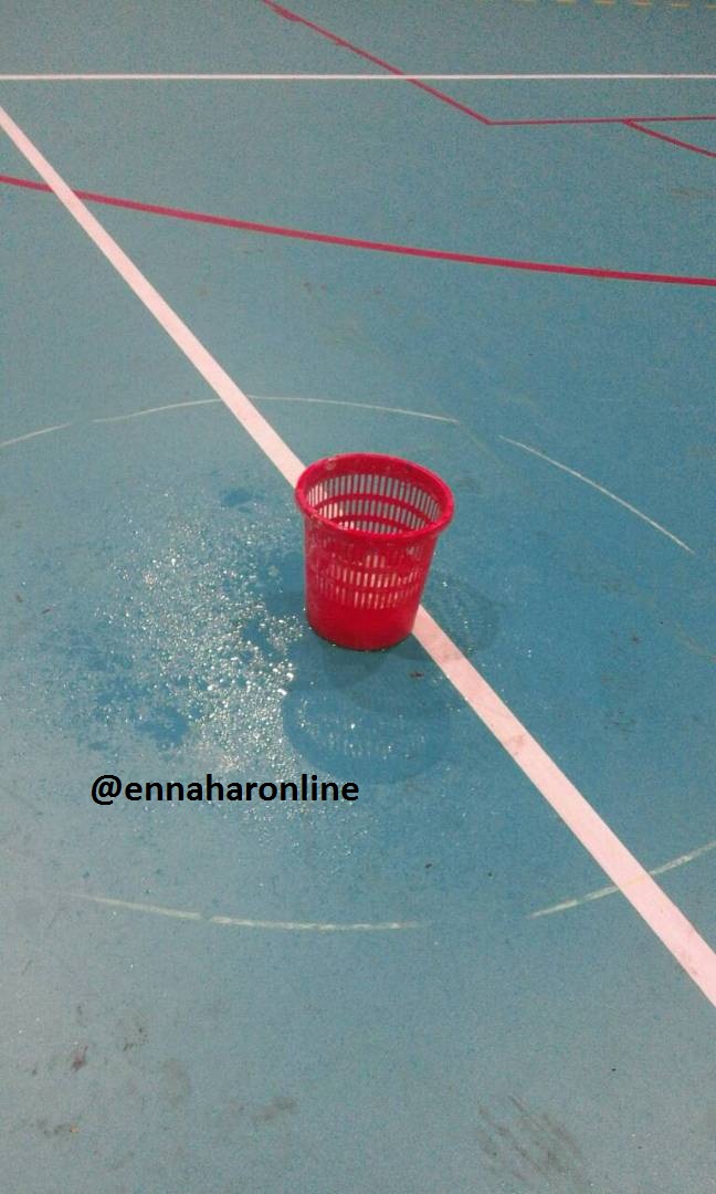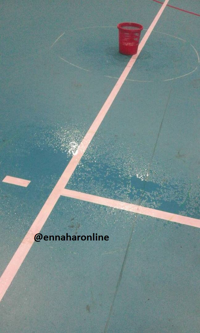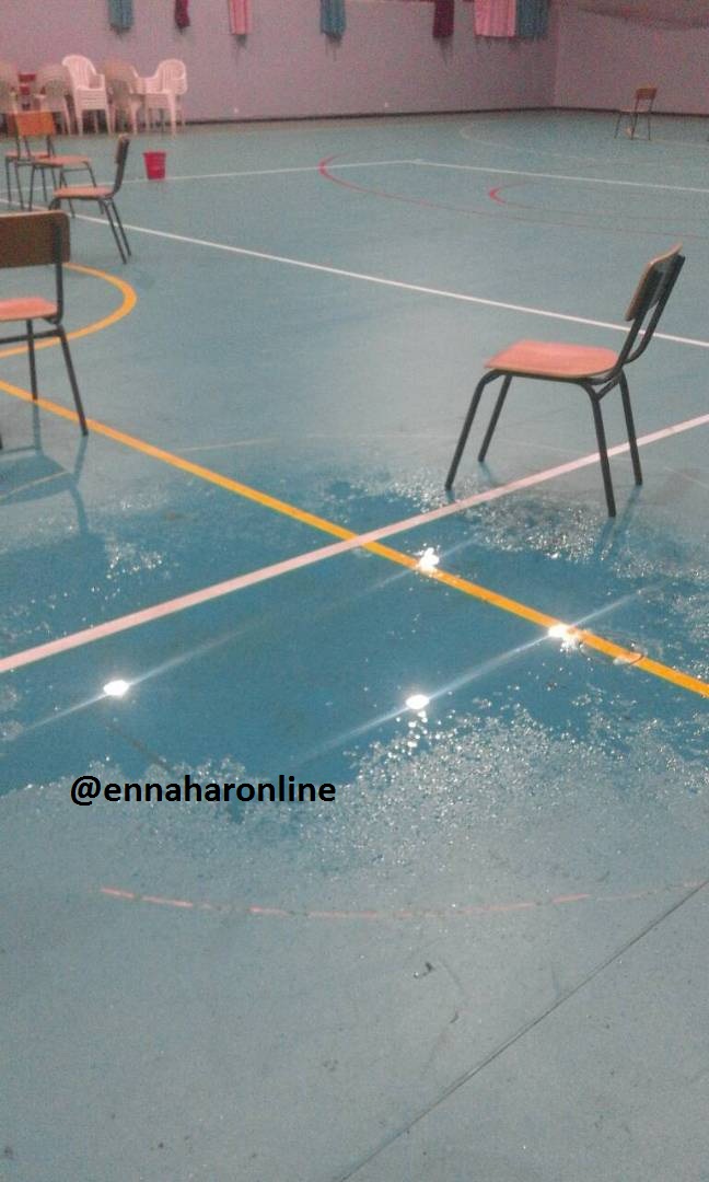وتظهر الصور التي تحوز عليها” النهار”، كيف تسربت الأمطار إلى القاعة، من خلال سقف القاعة المترهل ووصلت إلى أرضية الميدان، التي أغرقتها.