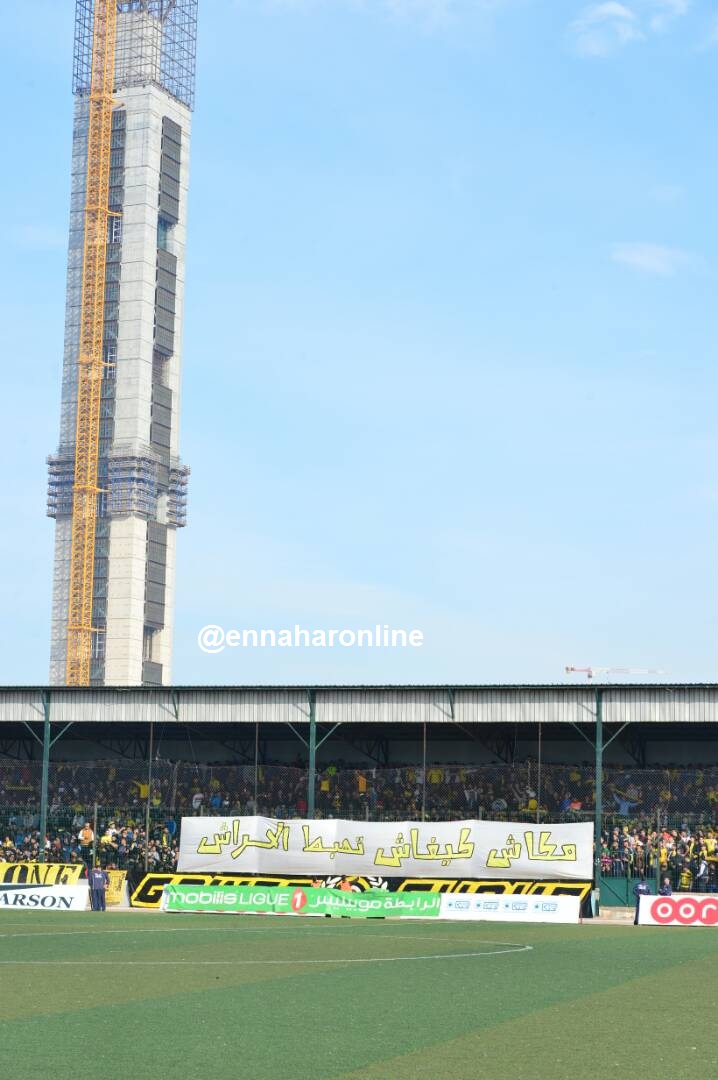 ورفع “الكواسر” لافتة عملاقة في الملعب، مكتوب عليها “مكاش كيفاه تهبط الحراش”، في رسالة واضحة إلى اللاعبين من أجل انقاذ الفريق من السقوط.
