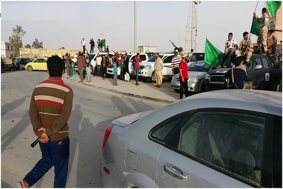 فقد خرج اليوم الليبيون في العديد من المدن خاصة مدينة بني وليد حاملين صور القذافي يهتفون بالنظام الجماهيري متحدين المليشيات.