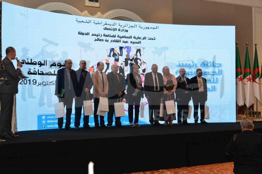 وزعت وزارة الإتصال سهرة اليوم، جوائر على المتوجين بالمراتب الأولى في جائزة رئيس الجمهورية للصحفي المحترف 2019.