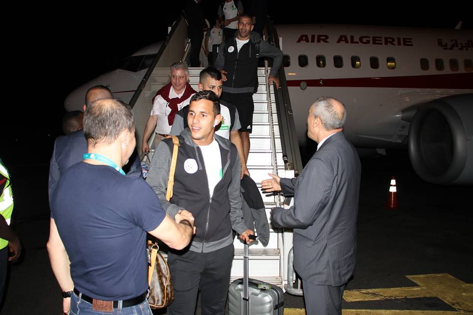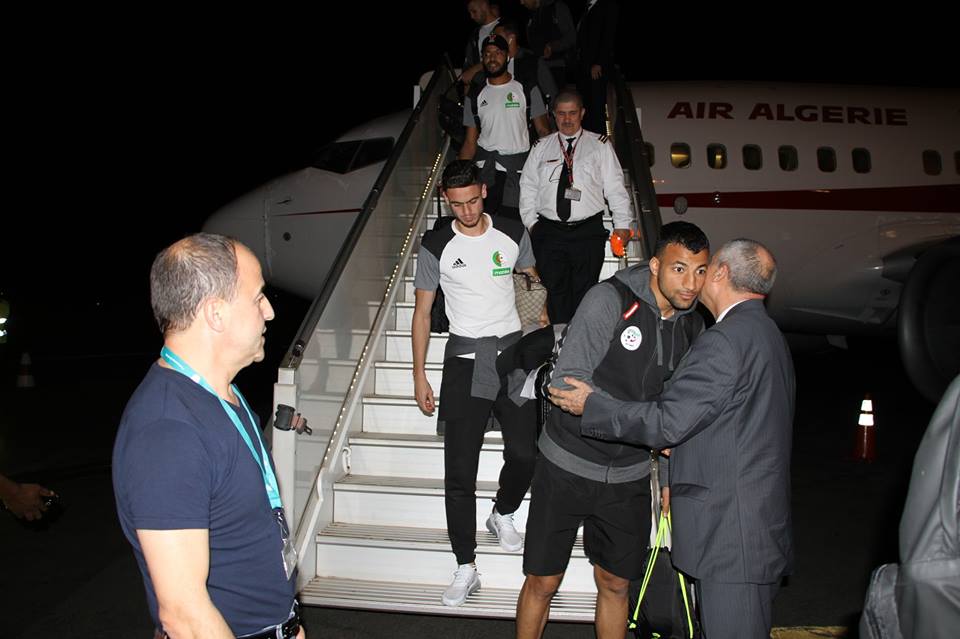 وحطت طائرة “الخضر” بعد رحلة دامت حوالي 5 ساعات إنطلاقاً من مطار هواري بومدين.