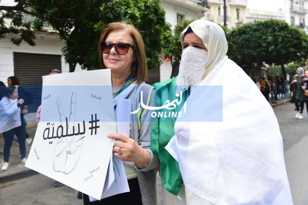 ميزت المسيرة السلمية التي شهدتها العاصمة اليوم الجمعة، تواجد العنصر النسوي بقوة عكس الجمعتين الماضيتين، لتزامنها مع عيد المرأة.