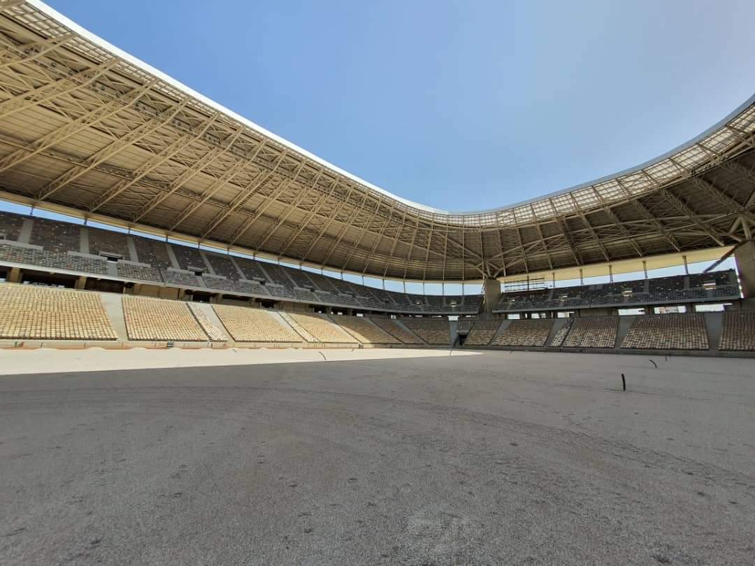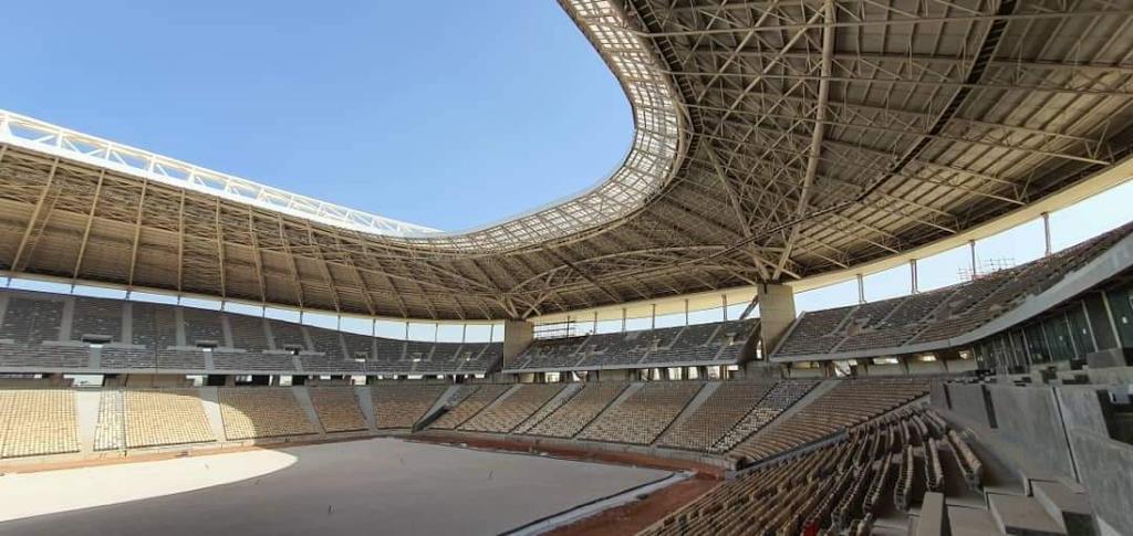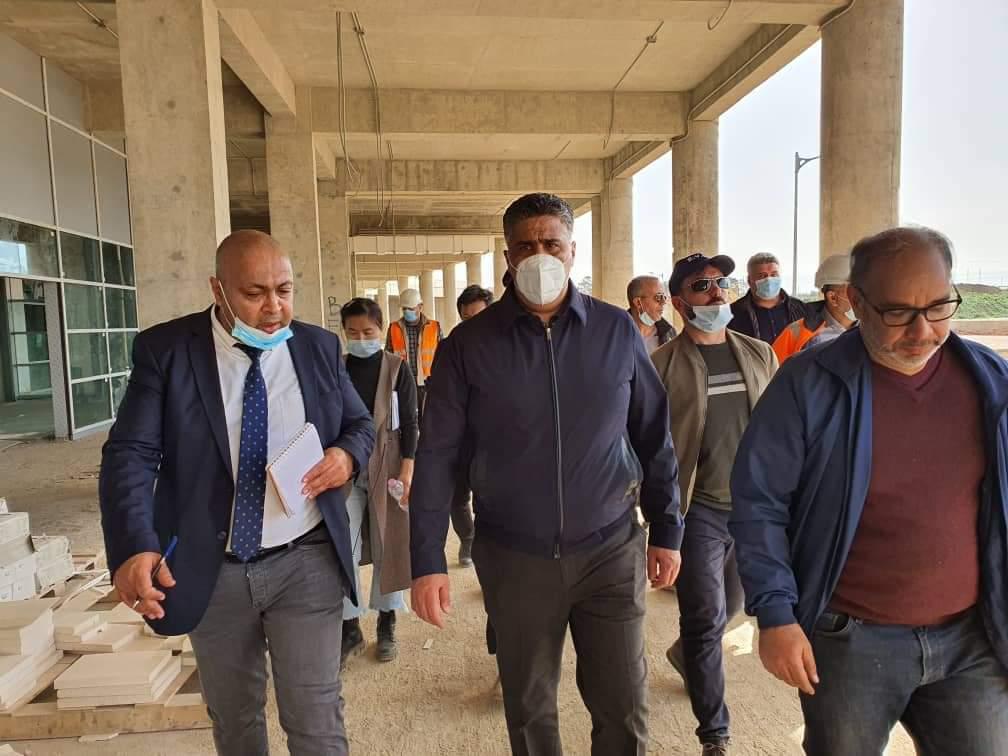 كما تفقد وزير السكن والعمران، أرضية الملعب الأساسية، والتي بلغت نسبة انجازها 70%، وشدد الوزير على تركيب الشاشتين، وسياج المدرجات.