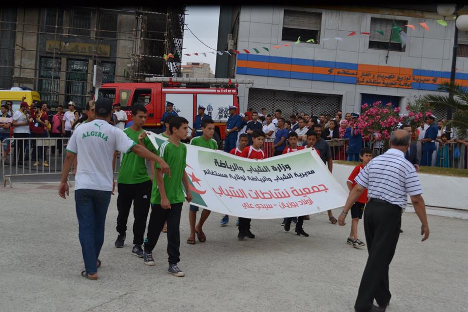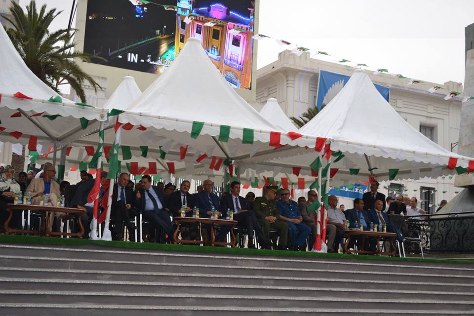 أمام السلطات المحلية والفنانين والمدعوين الذين كانوا بالمنصة التي أقيمت بساحة الاستقلال بوسط مدينة مستغانم.