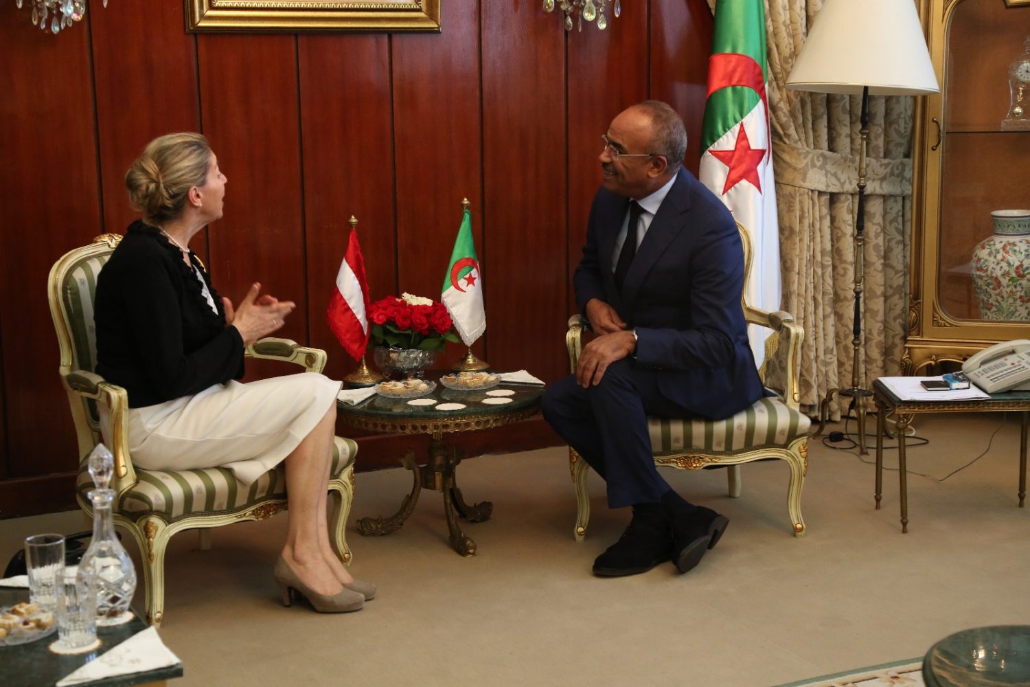 وكان الإستقبال على شكل جلسة توديعية للسفيرة، إثر إنتهاء مهامها وعملها في الجزائر.