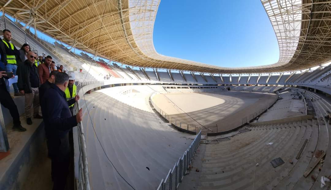 واستغل الوزير بلعريبي، هذه الزيارة، للوقوف على مدى تقدم وتيرة الإنجاز على مستوى الملعب، وبقية المرافق التابعة له.