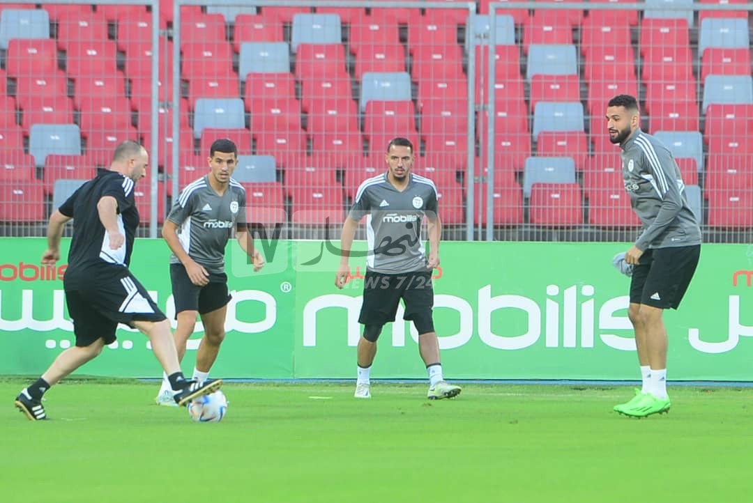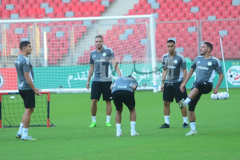 كما عرفت الحصة التدريبية قبل بدايتها اجتماع الناخب الوطني، جمال بلماضي، بالرباعي، يوسف عطال، رياض محرز، إسلام سليماني، ويوسف بلايلي.