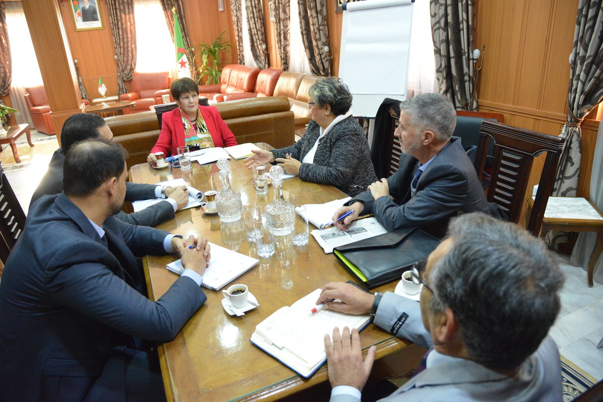 اجتماع الوزيرة مع مسؤولي نقابات SNAPEP، SNCCOPEN، SNAPAP كمجموعة أولى في إطار اللقاءات الدورية مع الشريك الاجتماعي.