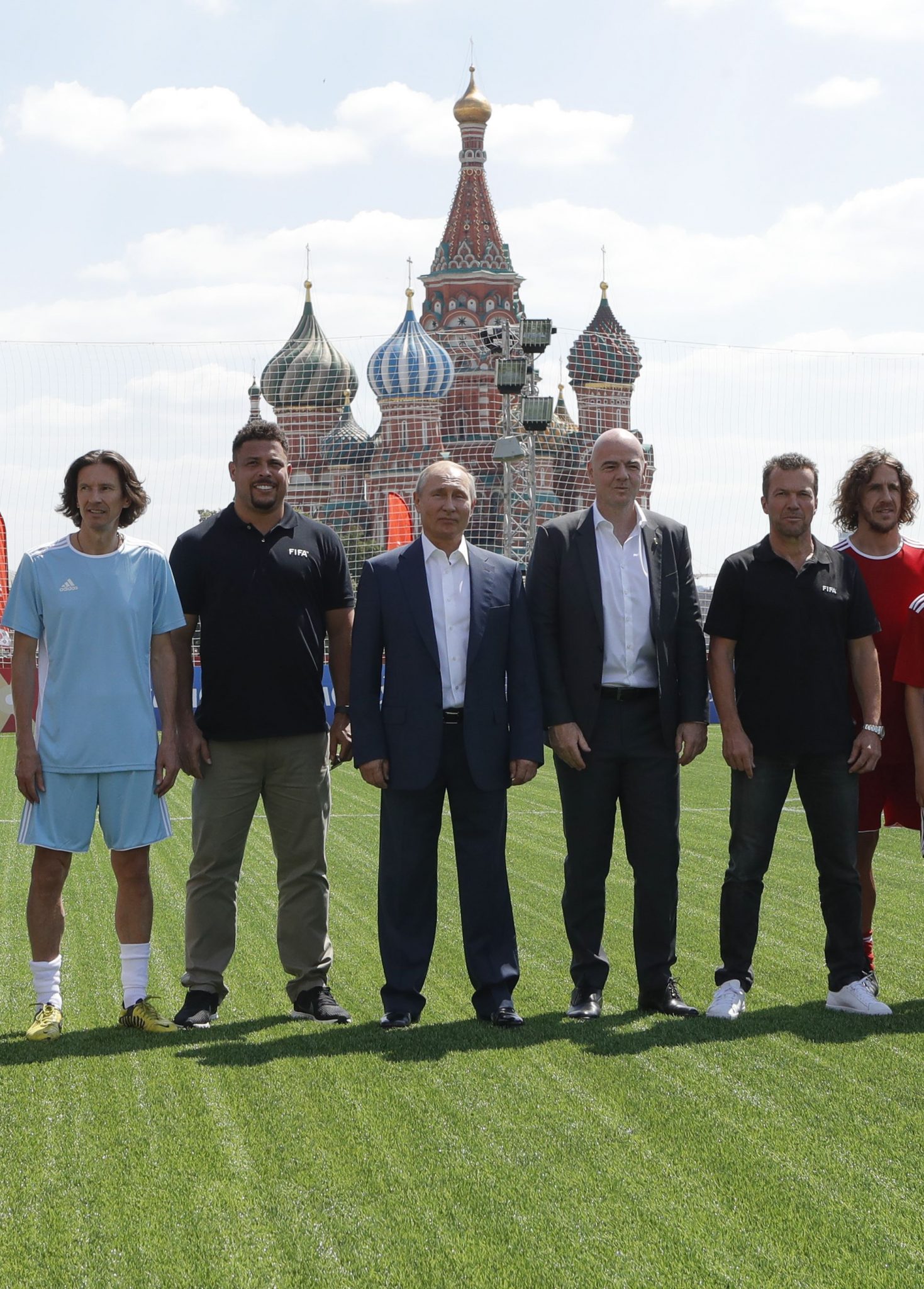 بالصور.. بوتين وانفانتينو يشاركان في مباراة استعراضية ضد نجوم العالم