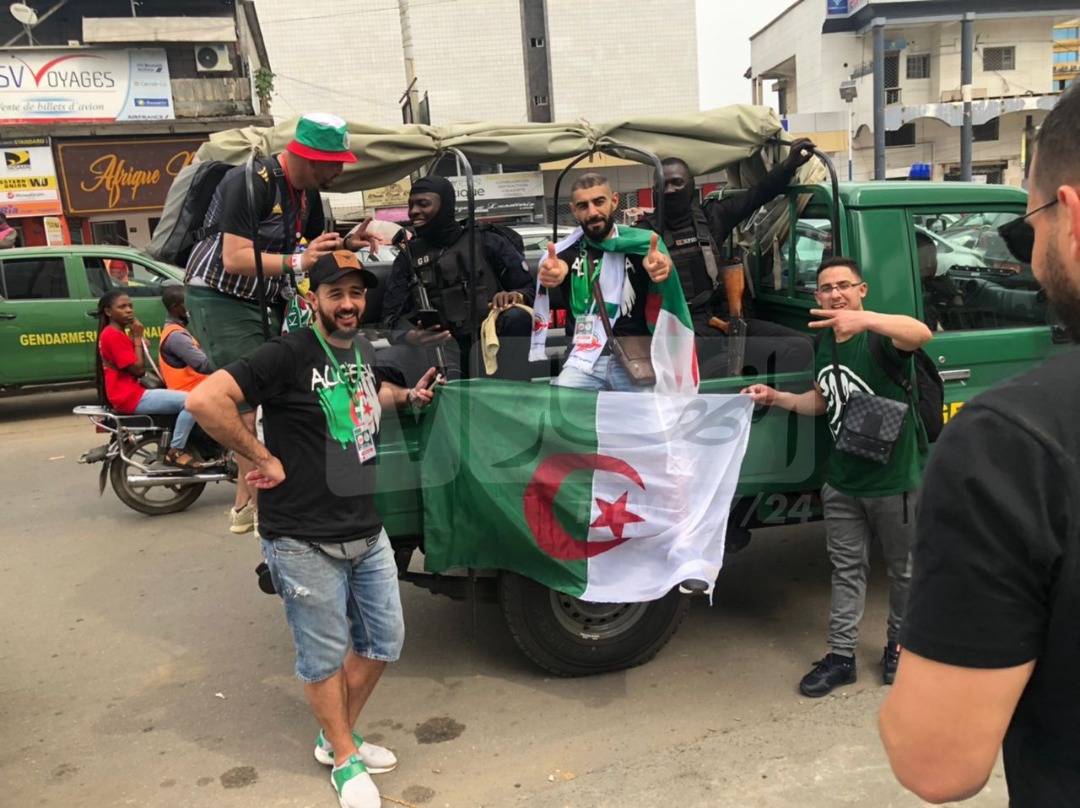 واستغل أنصار المنتخب الوطني، هذه الفرصة لأخذ صور تذكارية، رفقة عناصر الأمن، أمام فندق المنتخب الوطني.
