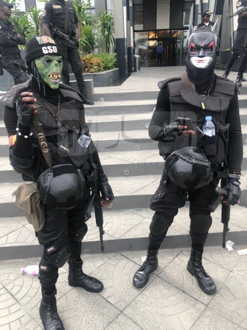 كما صنعت قوات الأمن التي توجدت بمحيط فندق الخضر، الحدث من خلال ارتدائها أقنعة لشخصيات معروفة على غرار “بات مان”.