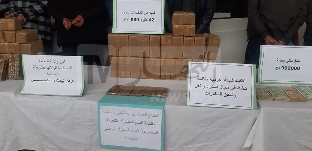 تمكنت عناصر فرقة البحث والتدخل التابعة للشرطة القضائية بأمن النعامة من تفكيك شبكة تتاجر في المخدرات وحجز 43 كلغ.