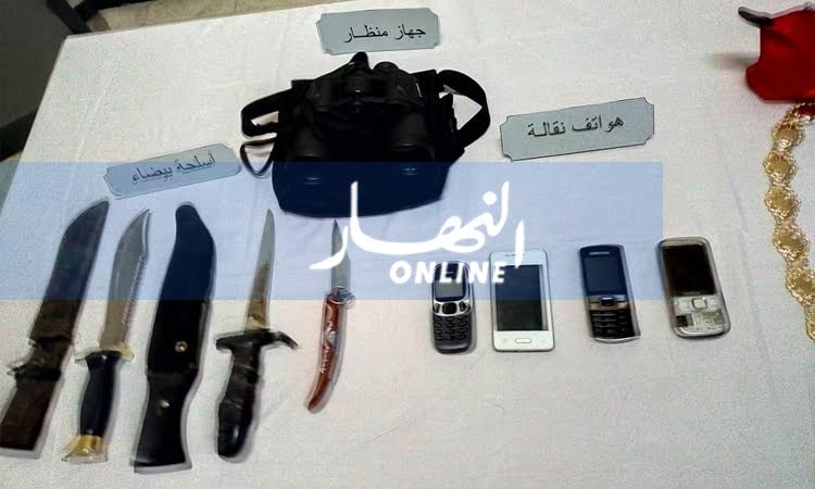 إضافة إلى منظار وأسلحة بيضاء و هواتف نقالة