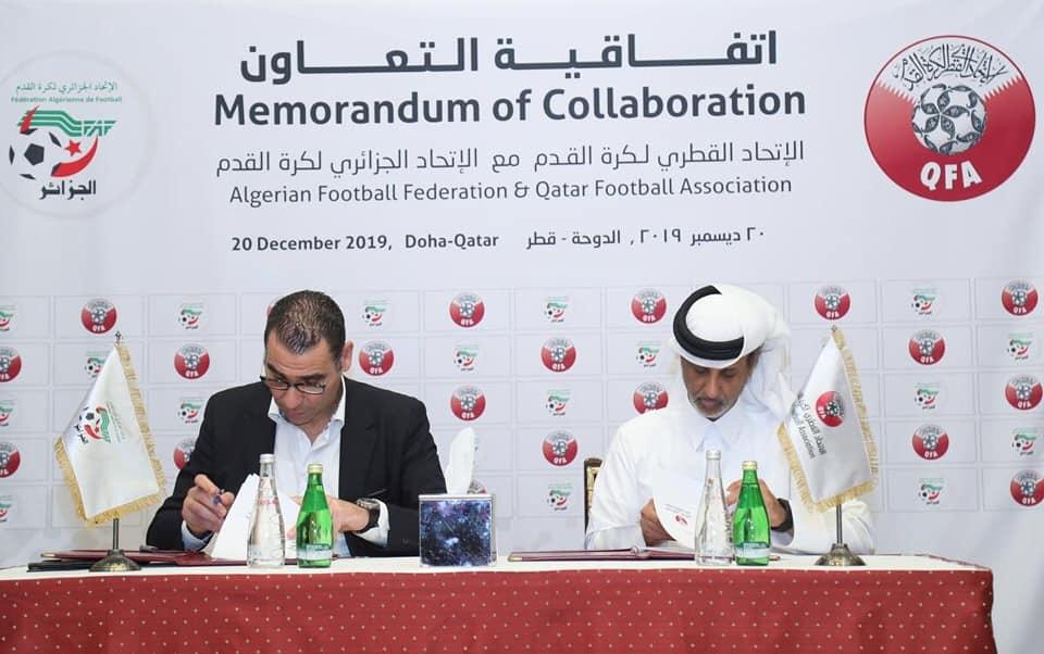 وقع الإتحاد الجزائري لكرة القدم اليوم الجمعة على إتفاقية تعاون مع الإتحاد القطري لقكرة القدم بحضور الناخب الوطني جمال بلماضي.