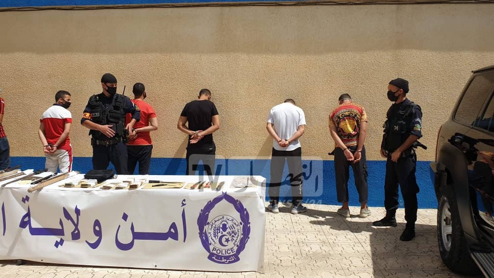 وتم على إثر العمليتين توقيف 16مشتبه فيه، أفرادها يحترفون الإتجار غير الشرعي بالمؤثرات العقلية و زرع الرعب في نفوس المواطنين مع حجز كمية من المخدرات والأسلحة البيضاء من مختلف الأحجام ومبالغ مالية من عائدات الإتجار بالمخدرات.