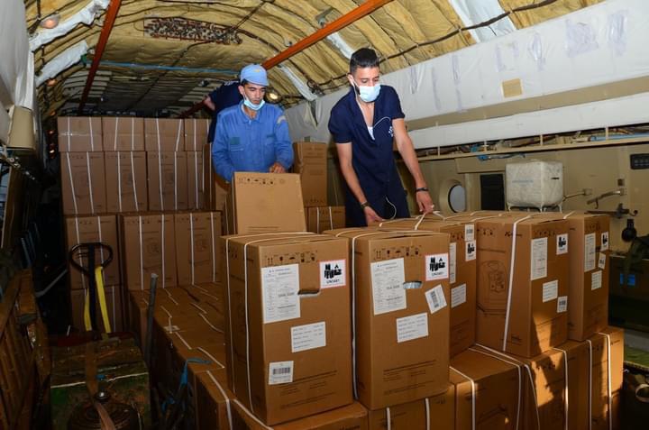 بالصور.. جلب أجهزة لتكثيف الأكسجين على متن طائرة عسكرية