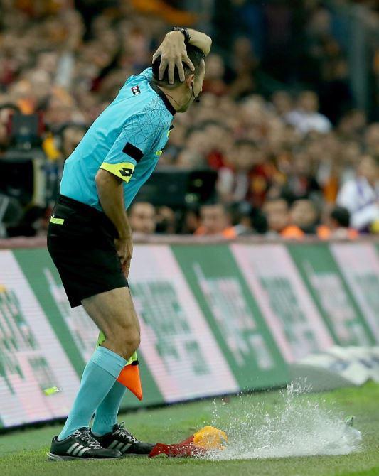 وكانت جماهير”غلطة سراي” قد ثارت في وجه حكم التماس بعد لقطة فيغولي حتى أوقف الحكم المباراة.