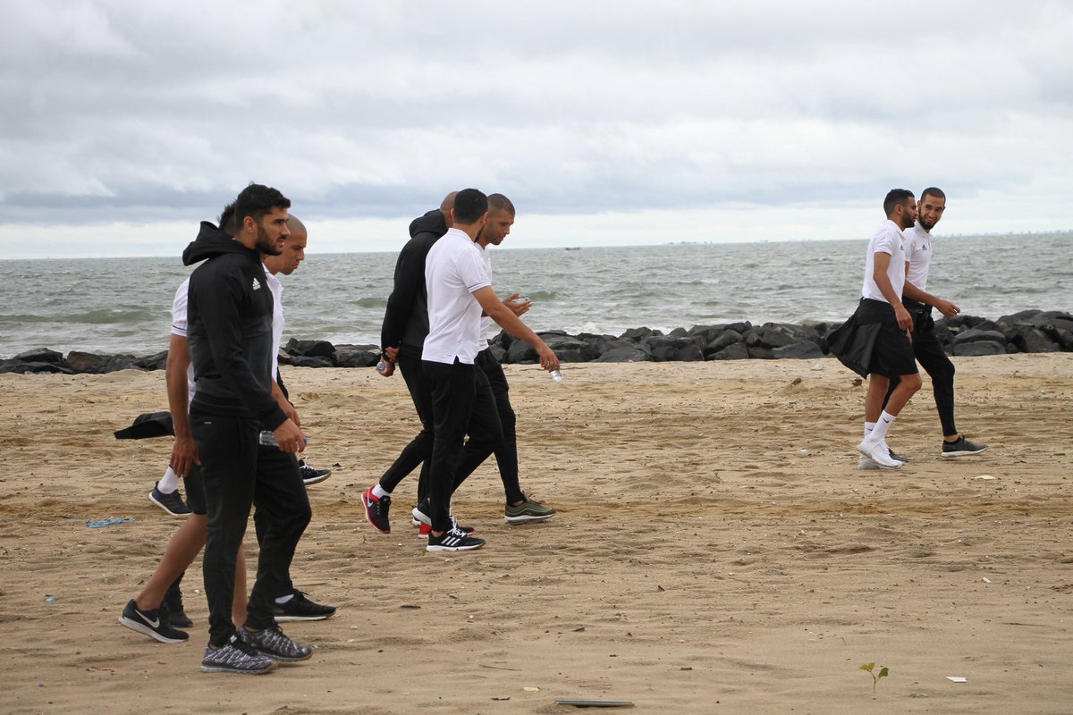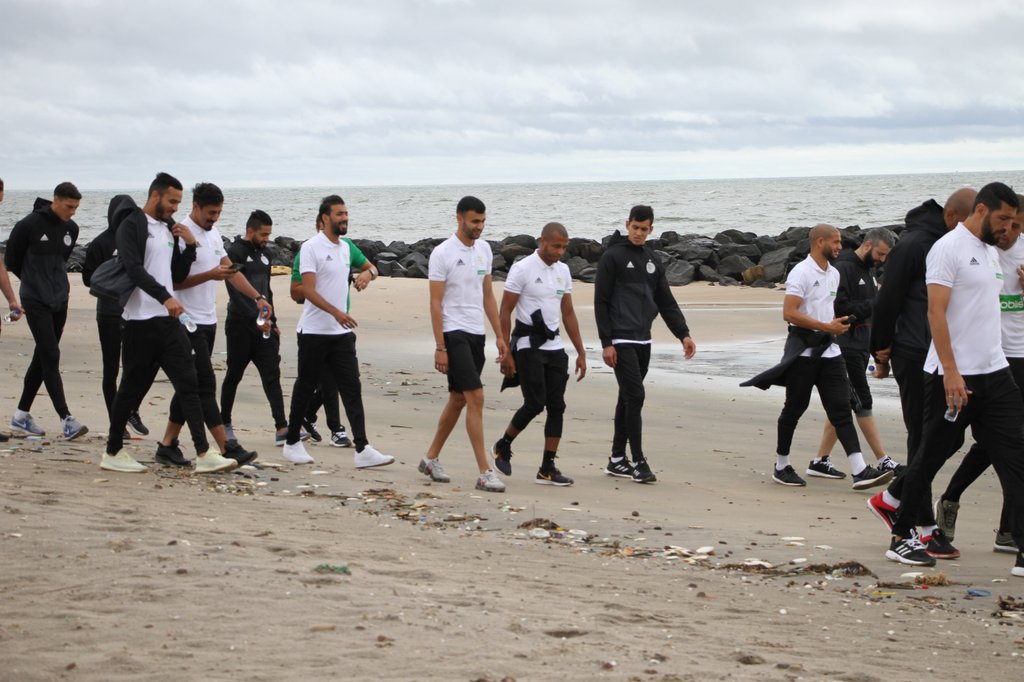 بالصور..جولة خفيفة للاعبي الخضر على شاطئ البحر قبل مواجهة غامبيا