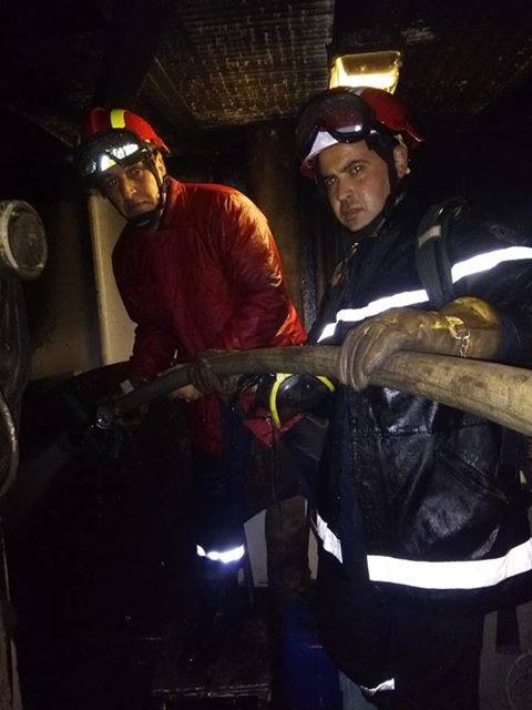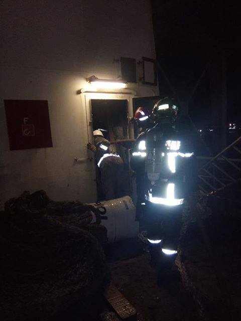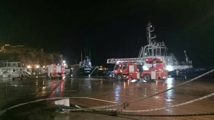 وبعد تكسير باب الجناح الذي يضم المدخنة باشر عناصر الحماية المدنية باطفاء الحريق بمساعدة منقذي الميناء.