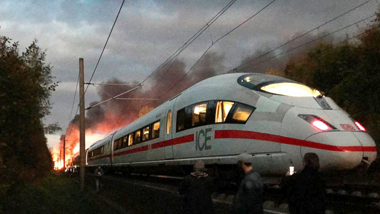 بالصور.. حريق في قطار سريع بألمانيا