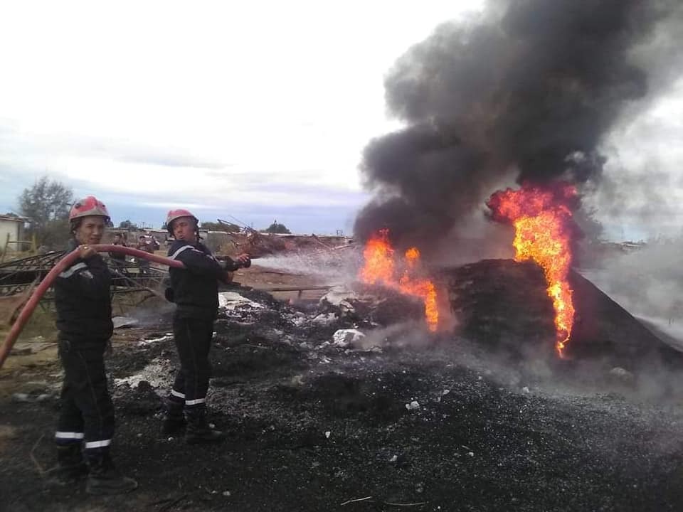 أخمدت مصالح الحماية المدنية بالمحمدية في معسكر ظهيرة اليوم الثلاثاء حريق مهول شب في مخزون الزفت بقاعدة الحياة للشركة الصينية المتواجدة عند ناصية الطريق الوطني رقم 17 شرقا .