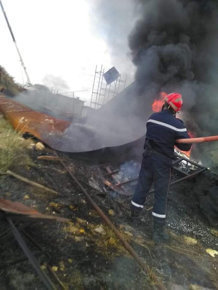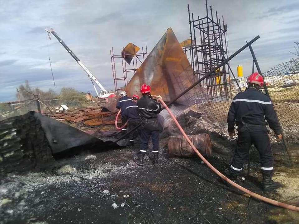 أخمدت مصالح الحماية المدنية بالمحمدية في معسكر ظهيرة اليوم الثلاثاء حريق مهول شب في مخزون الزفت بقاعدة الحياة للشركة الصينية المتواجدة عند ناصية الطريق الوطني رقم 17 شرقا .