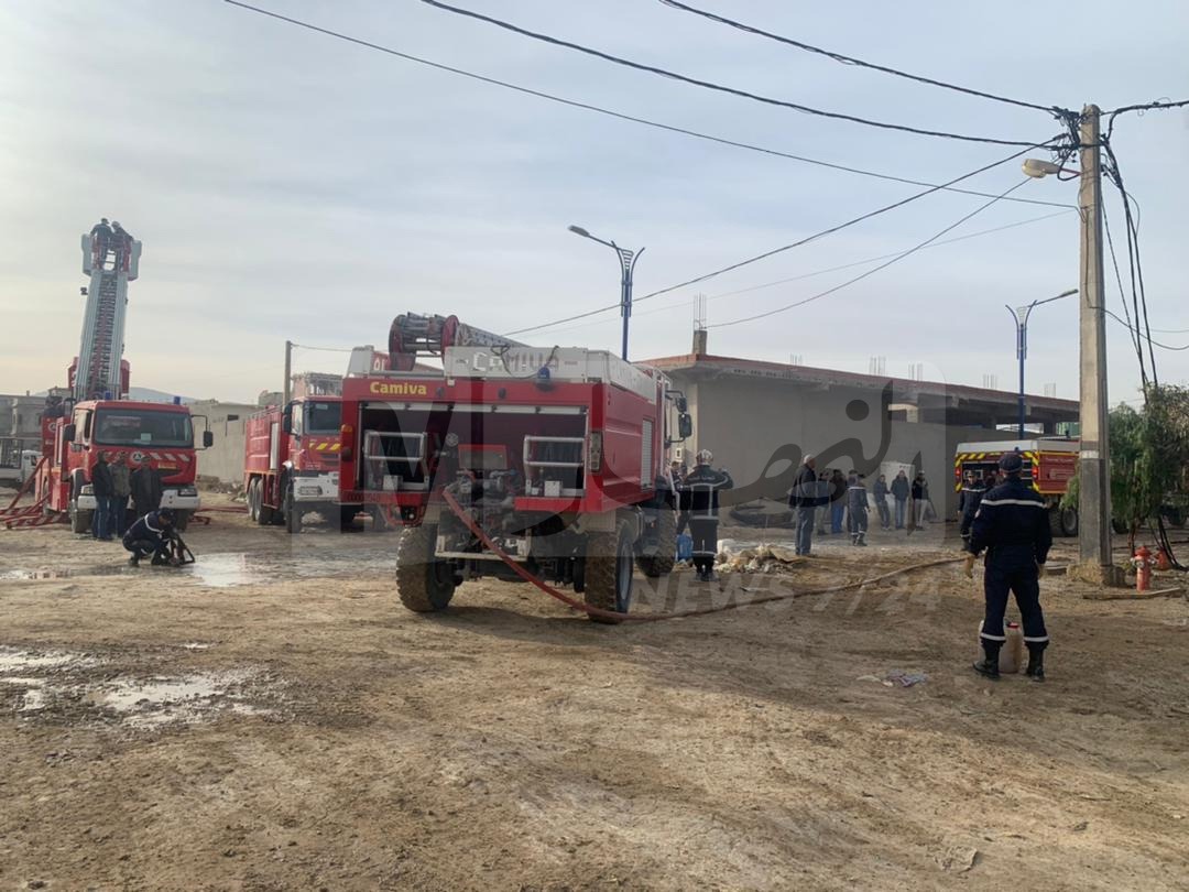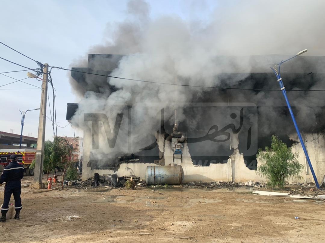 بالصور.. حريق مهول بمصنع إنتاج وتسويق الزرابي في تبسة