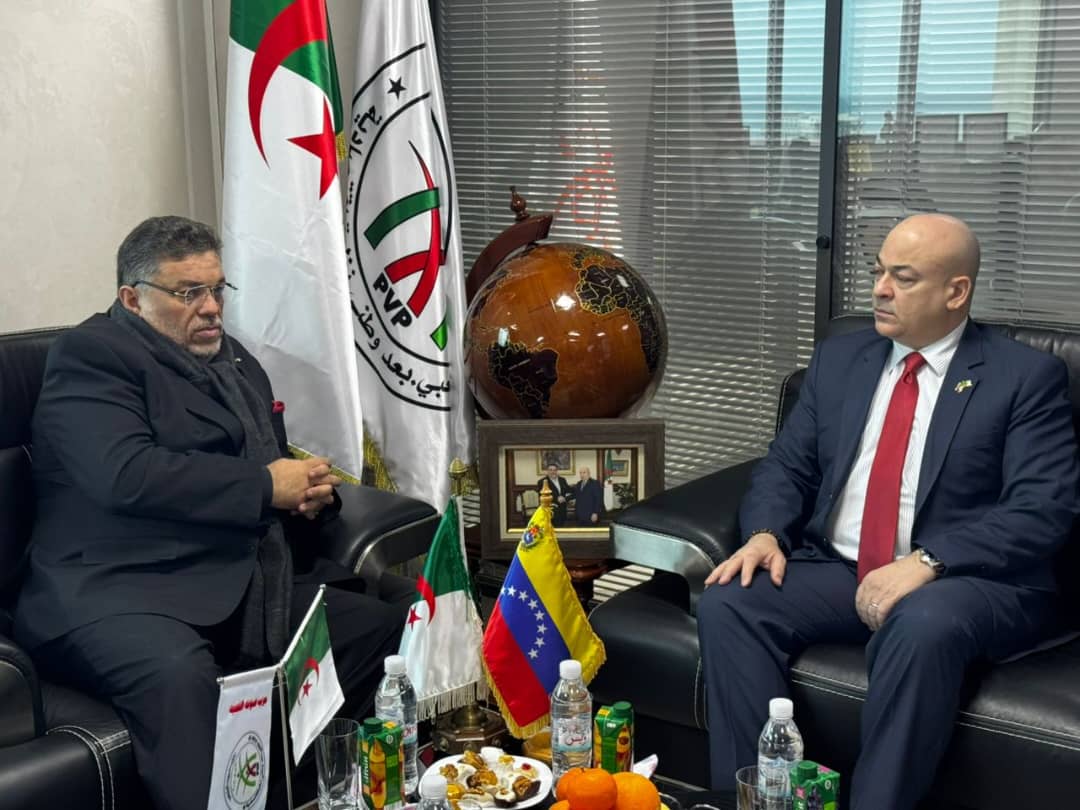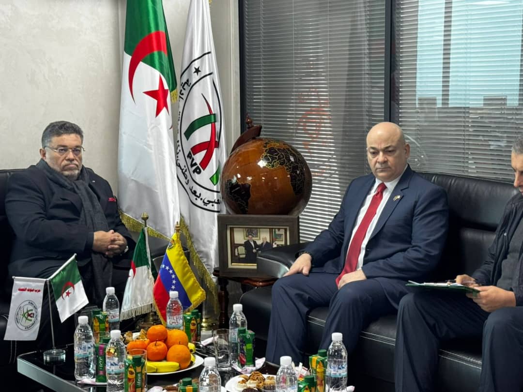 وشكّل اللقاء مناسبة لبحث أبرز مستجدات القضايا الدولية والإقليمية، إلى جانب مناقشة سبل تعزيز العلاقات الثنائية بين الجزائر وفنزويلا، خاصة في جانبيها السياسي والاقتصادي، بما ينسجم مع مواقف الدولة الجزائرية الداعمة للقضايا العادلة ونصرة الشعوب المستضعفة.