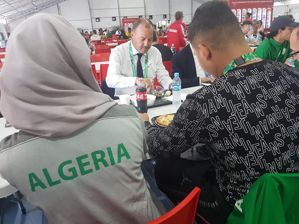 كما إغتنم حطاب تواجه بالعاصمة الأرجنتينية يبونس آيرس التي تحتضن الألعاب لتشجيع المواهب الوطنية والتواصل معهم.