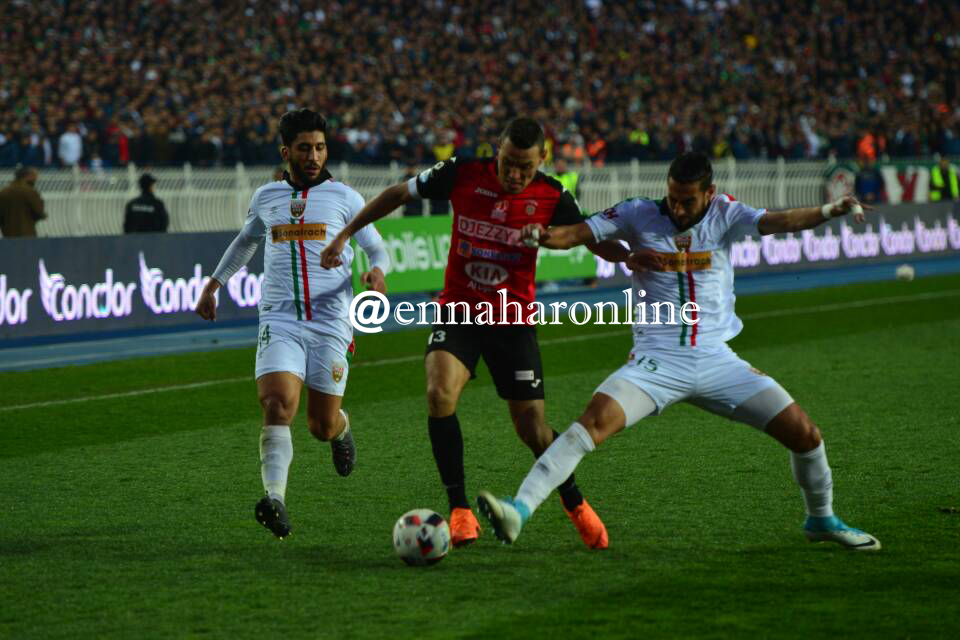 وذلك في اللقاء الذي جرى أمسية اليوم السبت بملعب 05 جويلية الأولمبي وسط حضور جماهيري كبير وأجواء خيالية صنعها أنصار الفريقين.
