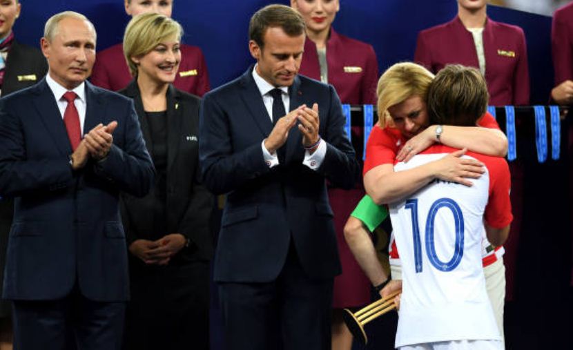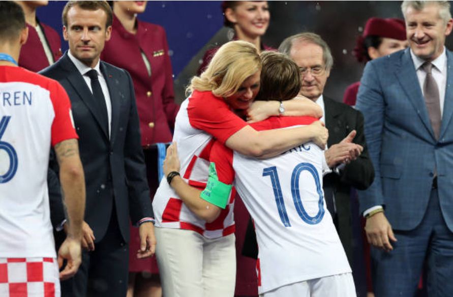 ولم تتمالك السيدة الأولى في دولة كرواتيا نفسها، بعد رؤيتها لمدريتش، الذي كان حزينا بعد الخسارة، حيث عانقته بشدة.