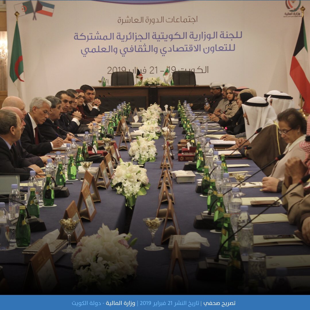 ترأس وزير المالية عبد الرحمان راوية مناصفة مع نظيره الكويتي نايف فلاح مبارك الحجرف أشغال الدورة العاشرة للجنة المشتركة الجزائرية-الكويتية المنعقدة من 19 إلى 21 فيفري 2019 بالكويت، حسب تغريدة لوزارة المالية الكويتية عبر التويتر .