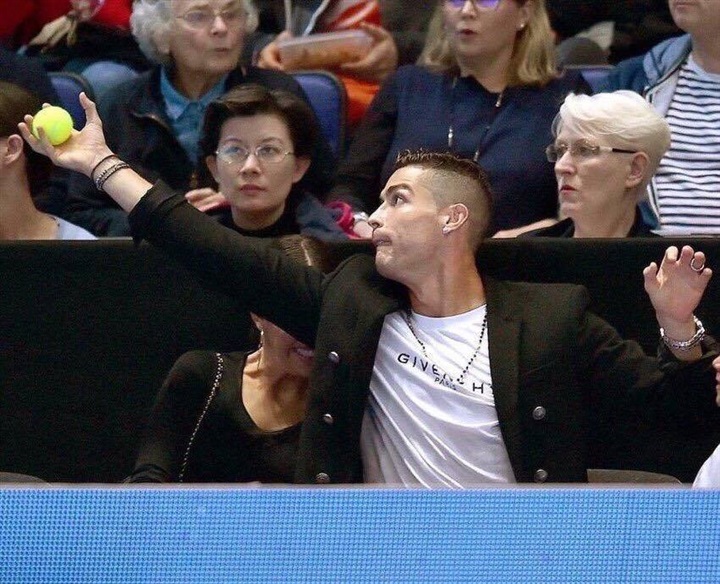 وقام “الدون” بحماية صديقته من كرة التنس التي كانت متوجهة نحوها  بطريقة تٌبرز خوفه عليها.