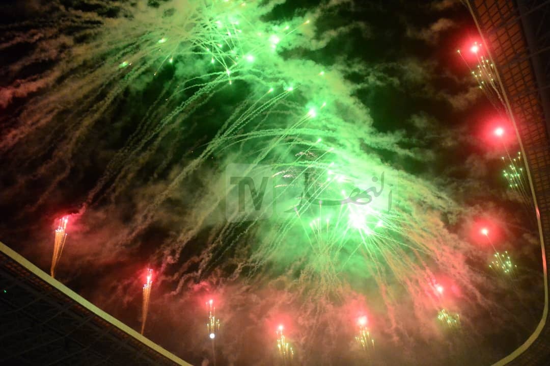 وتخلل الحفل في البداية عروض من الرقص مع عرض بالأضواء ومختلف الألعاب النارية.