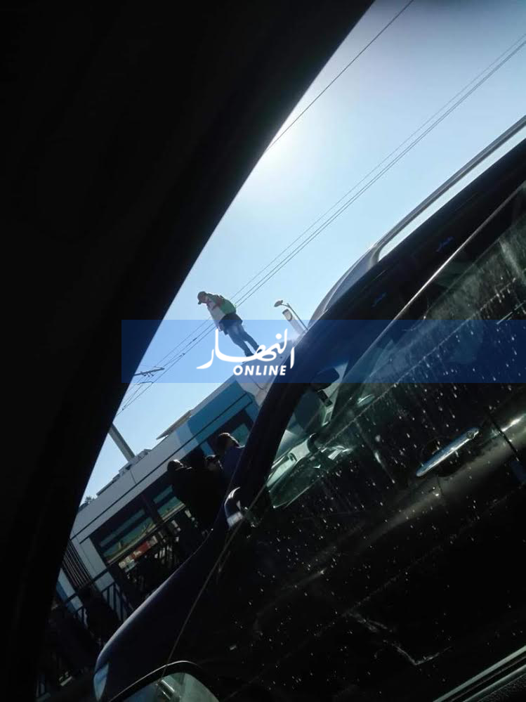 بالصور..  شاب يحاول الإنتحار بالبنزين فوق ترامواي ببرج الكيفان