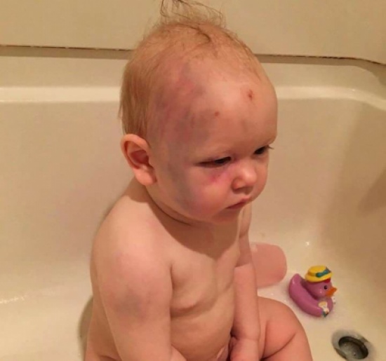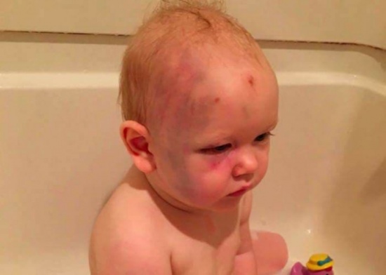 وأظهرت الصور الصبي، وهو جالس وأثار العنف تظهر في وجهه البريء.