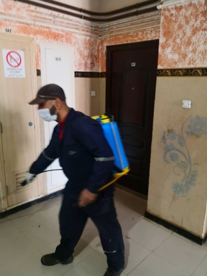 واكد المدير العام محمد طارق بلعريبي الذي يتابع مباشرة هذه العملية الكبيرة أنه تم تسخير كل الوسائل اللازمة من معدات رش و مواد تعقيم المصاعد وسلالم العمارات ،التجهيزات العمومية و محيط السكنات التابعة لعدل.
