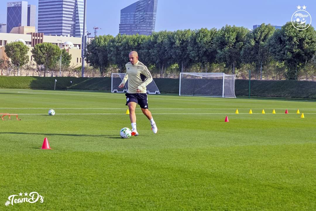 ونشير الى عدم اندماج قائد الخضر ونجم فريق مانشستر سيتي الانجليزي رياض محرز في التدريبات.