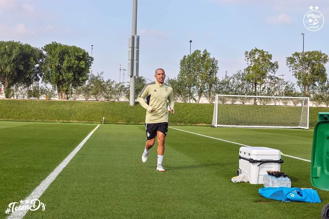 ونشير الى عدم اندماج قائد الخضر ونجم فريق مانشستر سيتي الانجليزي رياض محرز في التدريبات.