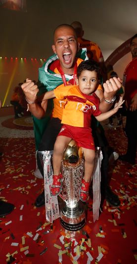ورفع “سوسو” علم الجزائر طيلة مراسيم الإحتفال باللقب الذي توج به رفقة فريقه غلطة سراي أمس السبت بعد الفوز على “غوزتيبي” بهدف دون رد في الجولة ال34 والأخيرة.