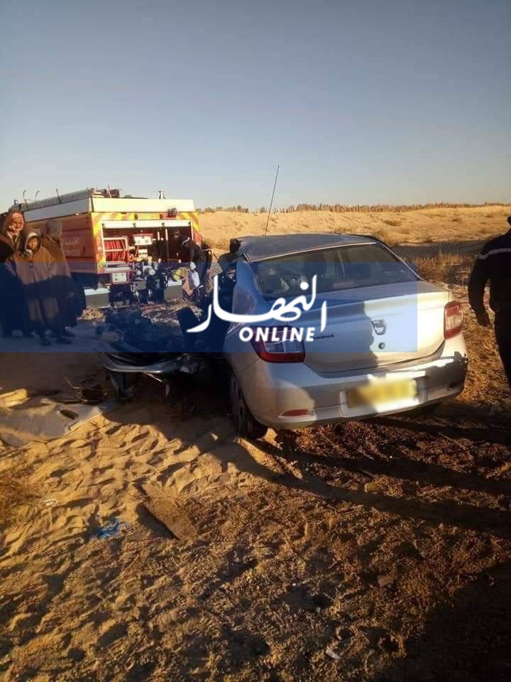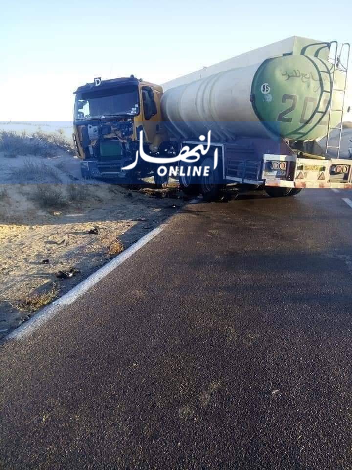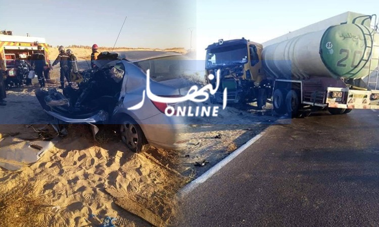 بالصور.. قتيل في حادث مرور بين سيارة وشاحنة مقطورة بحاسي خليفة في الوادي