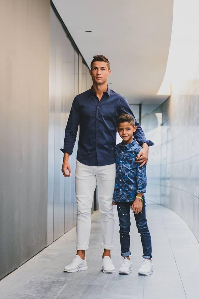والتي أطلق عليها إسم “CR7JUNIOR”، ونشر نفس الموقع صورا لكريستيانو جونيور ووالده وهم يرتديان قمصان وسراويل العلامة المذكورة.