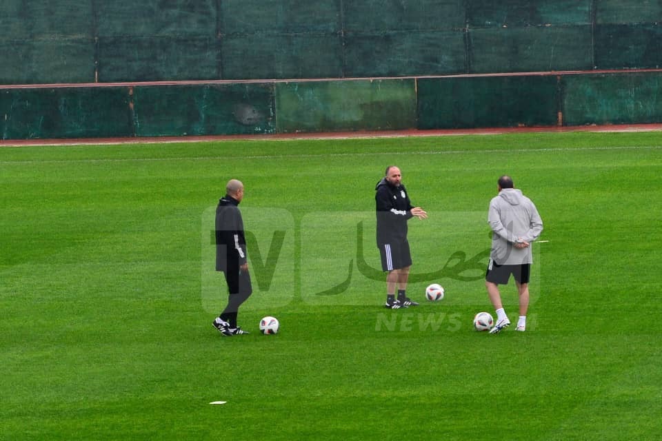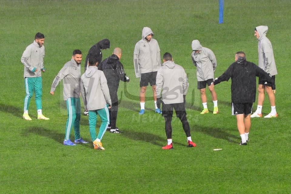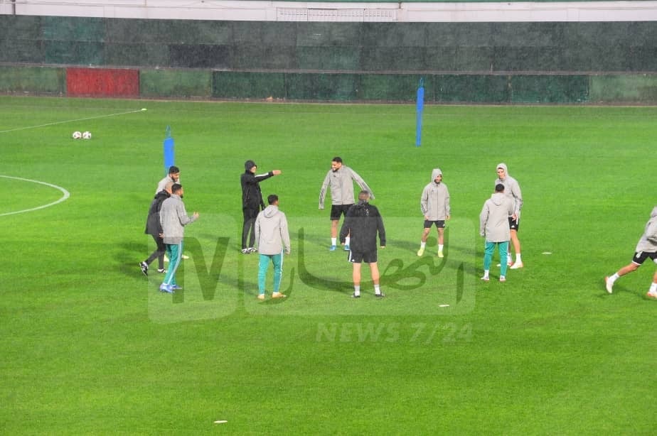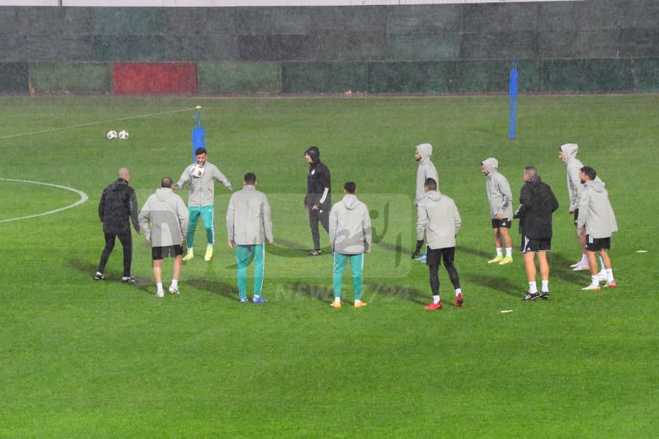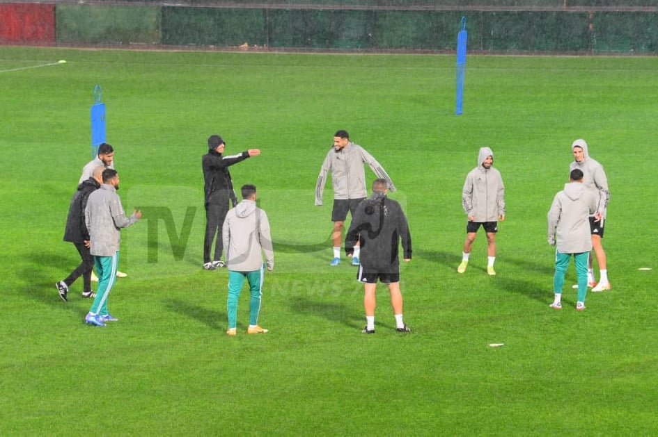 وبدأ القائد رياض محرز وزملائه في التدريبات. عن طريق مداعبة الكرة قبل الشروع في التحضيرات الجدية وسط إرشادات الكوتش بلماضي.