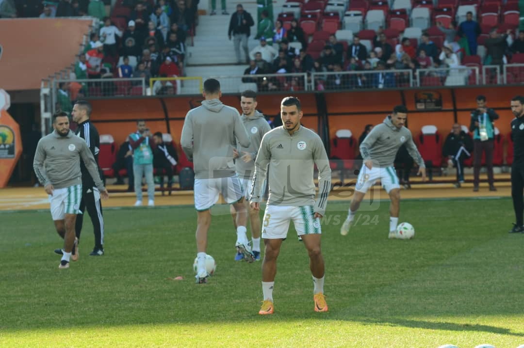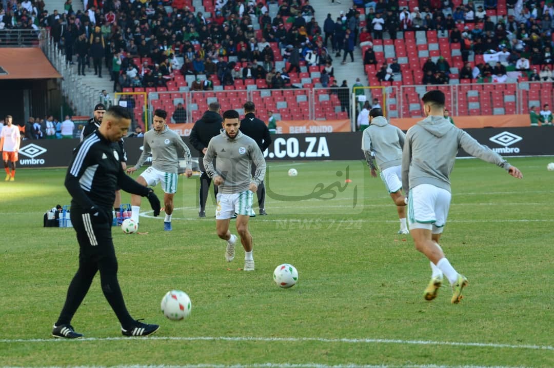 بالصور.. لاعبو الخضر يشرعون في الإحماءات تحسبا لموقعة النيجر