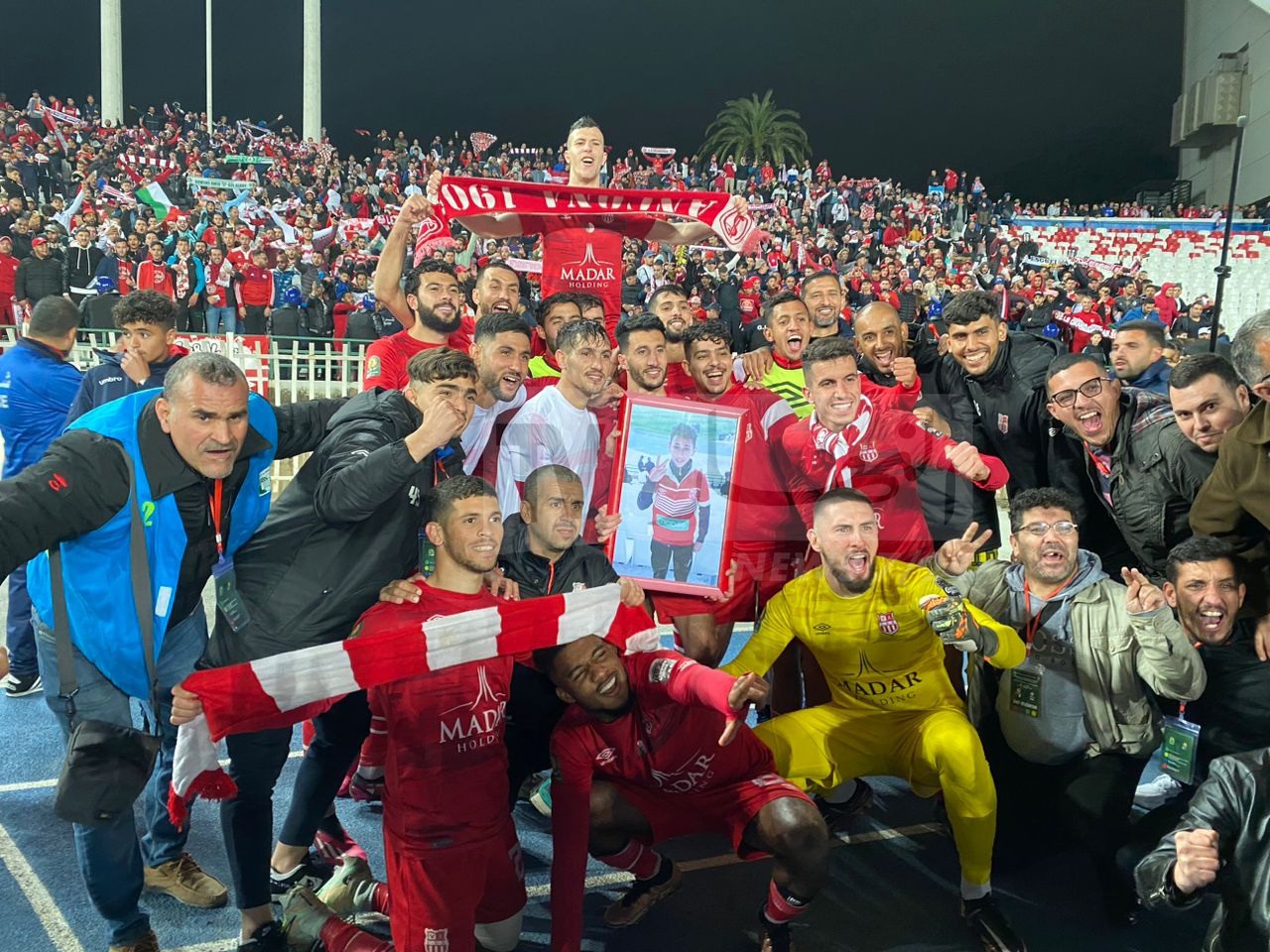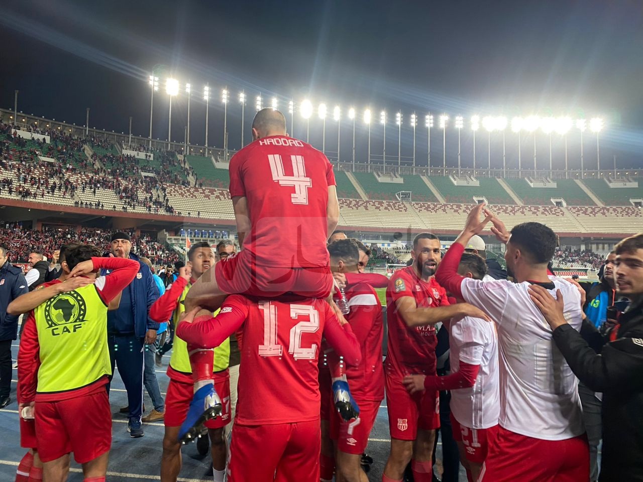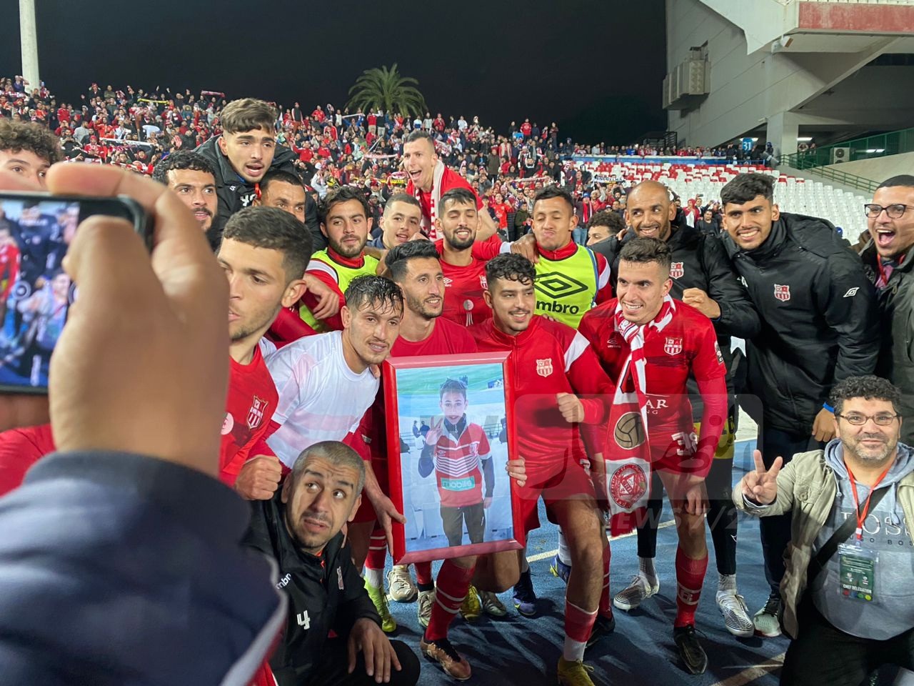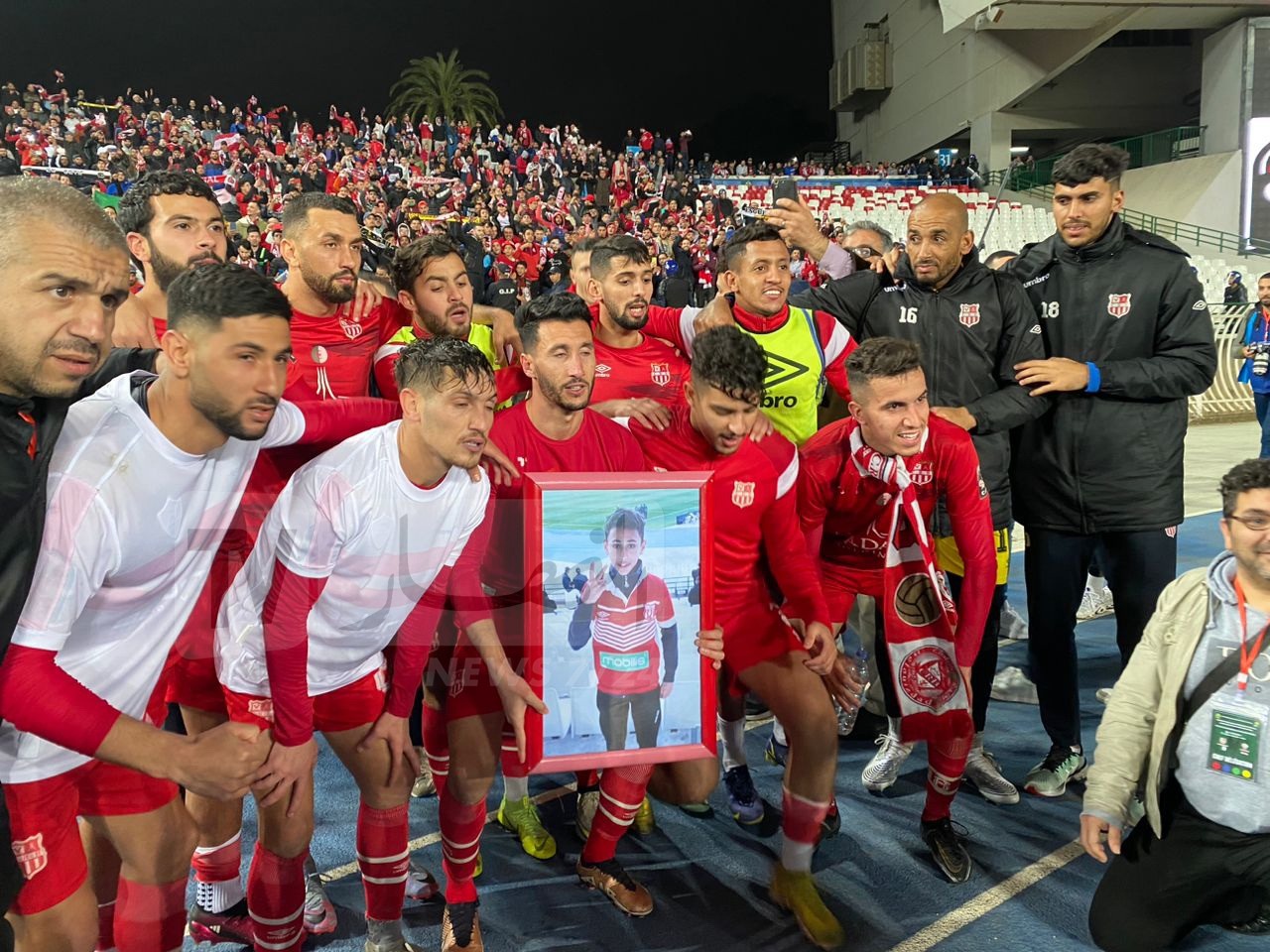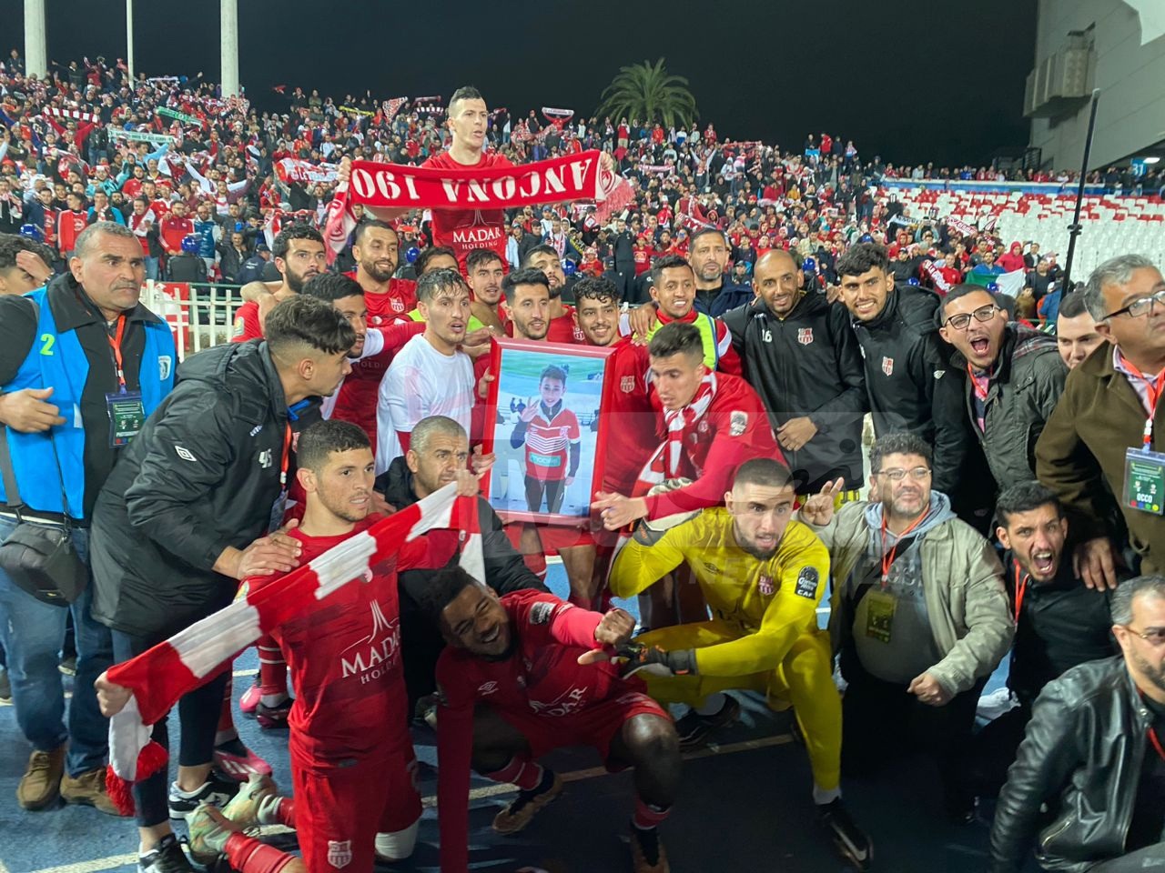 كما قام اللاعبون بحمل صورة المناصر الراحل، الذي كان حاضر في مواجهة الترجي التونسي بملعب 5 جويلية وهتفوا مطولا مع الجمهور كتعبير عن فرحتهم بالتأهل.