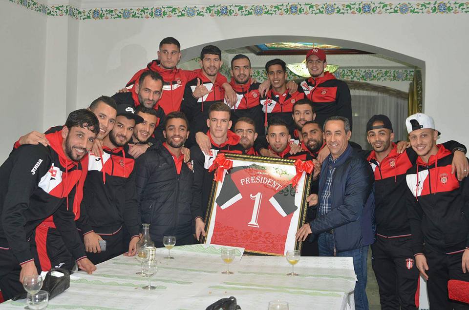 حيث فاجئ لاعبوا سوسطارة رئيسهم مباشرة بعد وجبة العشاء بفندق دار الضياف بالشراقة أين أقاموا حفلة مصغرة له.