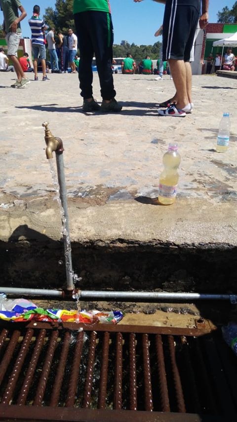 وظهر ماء الحنفيات الخاصة بمراحيض المركب الأولمبي بلون يميل للبني ما يُشكل خطرا على حياة الأنصار خاصة في ظل إنتشار داء الكوليرا.