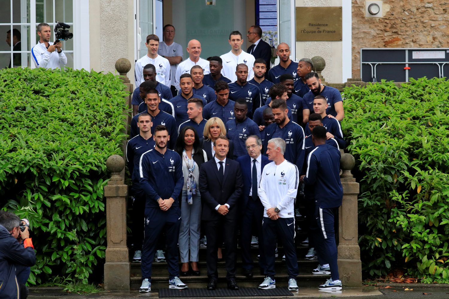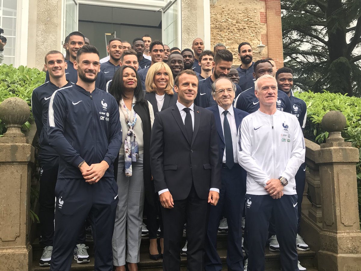 زار الرئيس الفرنسي إيمانويل ماكرون وزوجته، أمس الثلاثاء معسكر المنتخب الفرنسي بكليرفونتين، حيث يحضّر لنهائيات كأس العالم بروسيا.