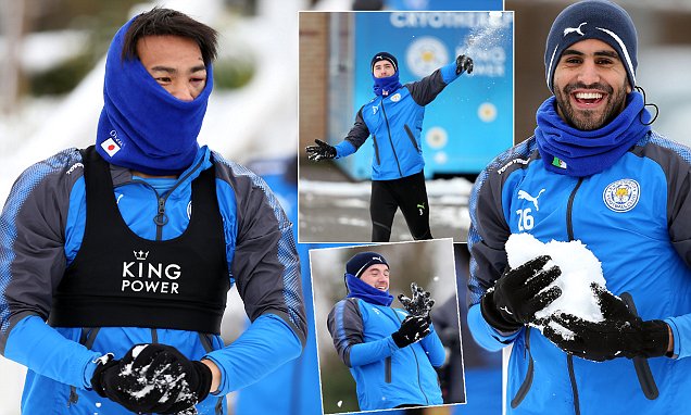 وظهر “الأشقر” يرمي كُرات الثلج على رفقائه والذين تمرنوا في أجواء باردة جدا، بعد العاصفة الثلجية التي ضربت مدينة “ليستر”.